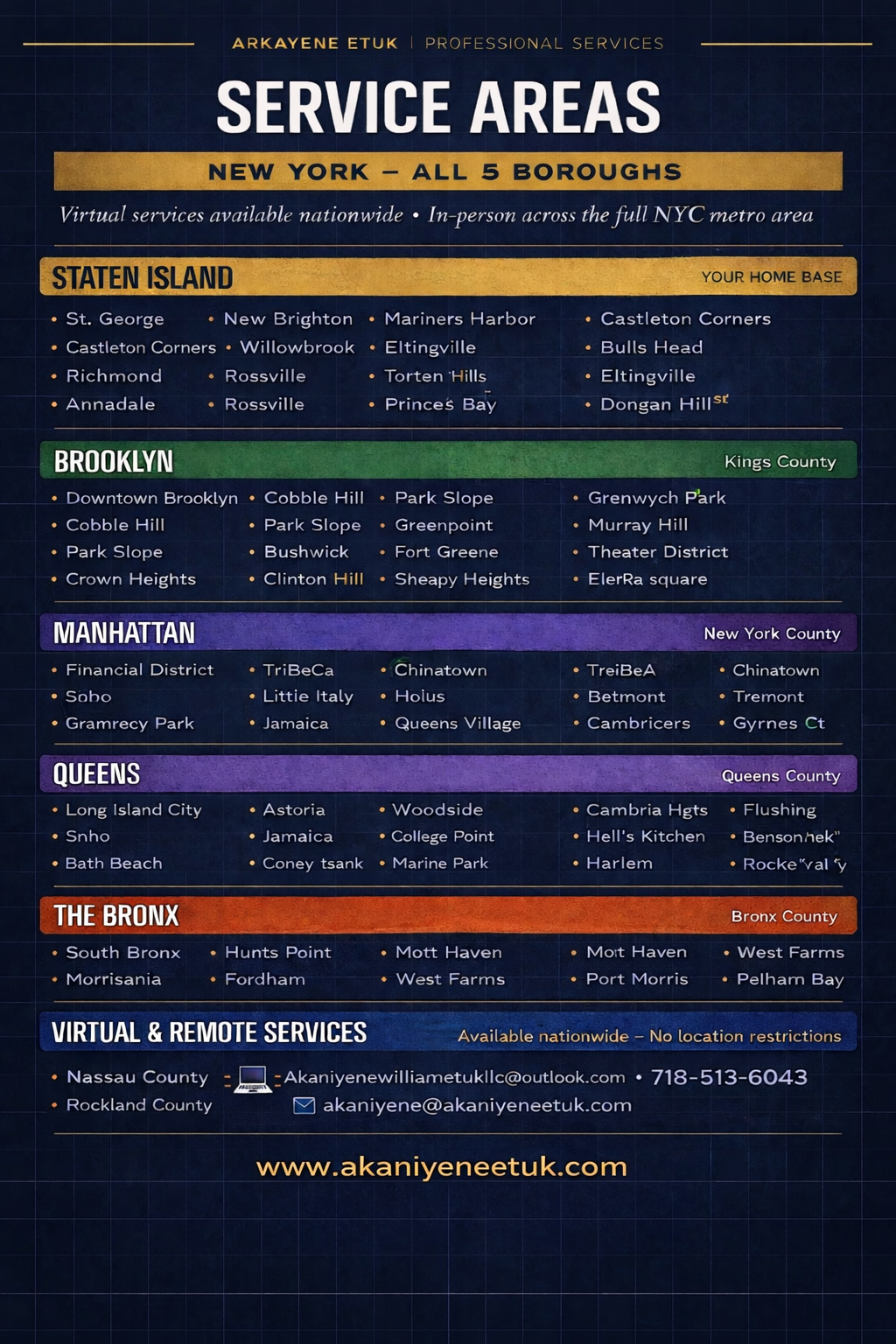 Professional Services proudly serves clients throughout New York City’s five boroughs—Staten Island, Brooklyn, Manhattan, Queens, and the Bronx. Our home base is in Staten Island, allowing us to provide reliable in-person services across the entire NYC metropolitan area.